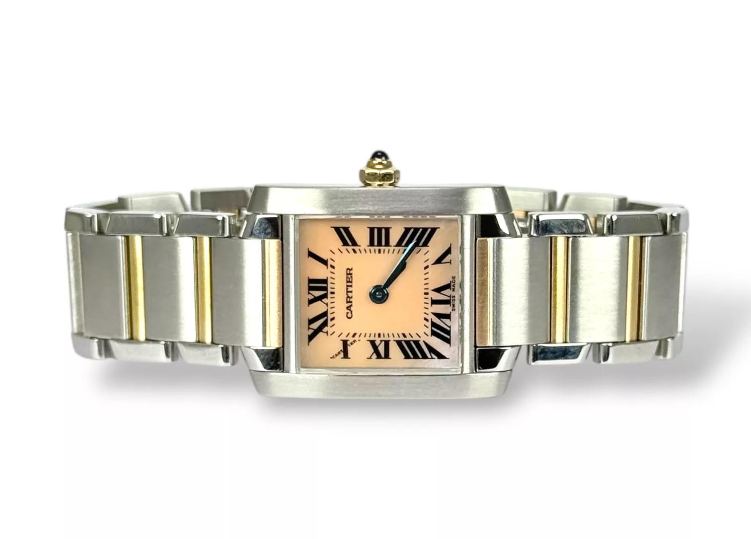 CARTIER Tank Francaise. 2384, Steel & Rose, Pink Mother of Pearl