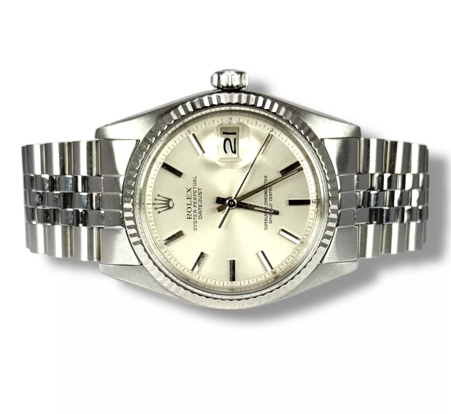 ROLEX 1977 Datejust 36, 1601, Silver Baton, Jubilee, Box & Papers