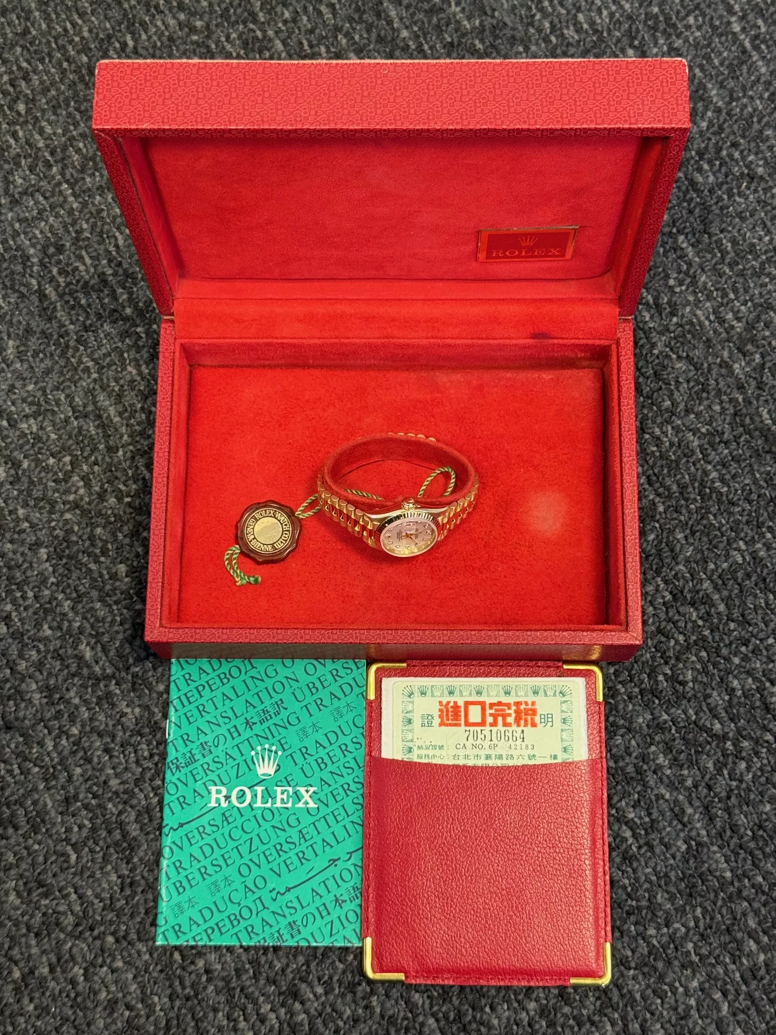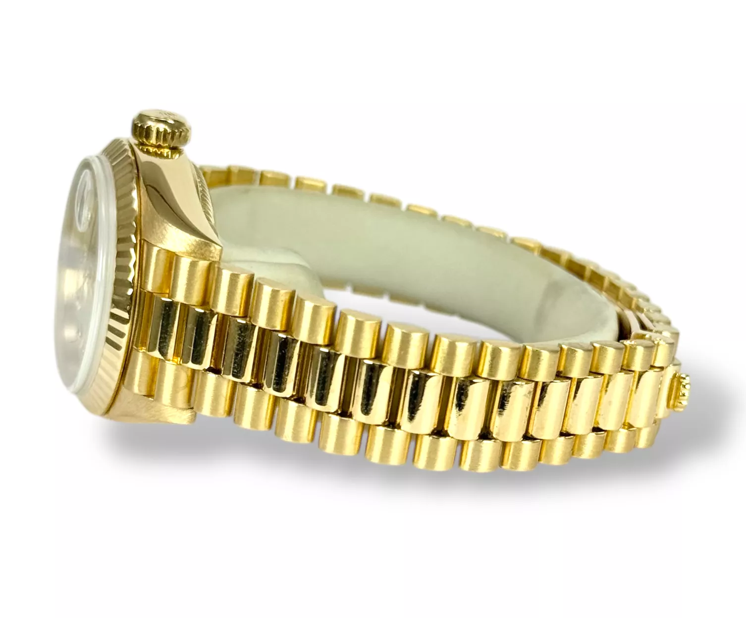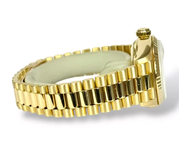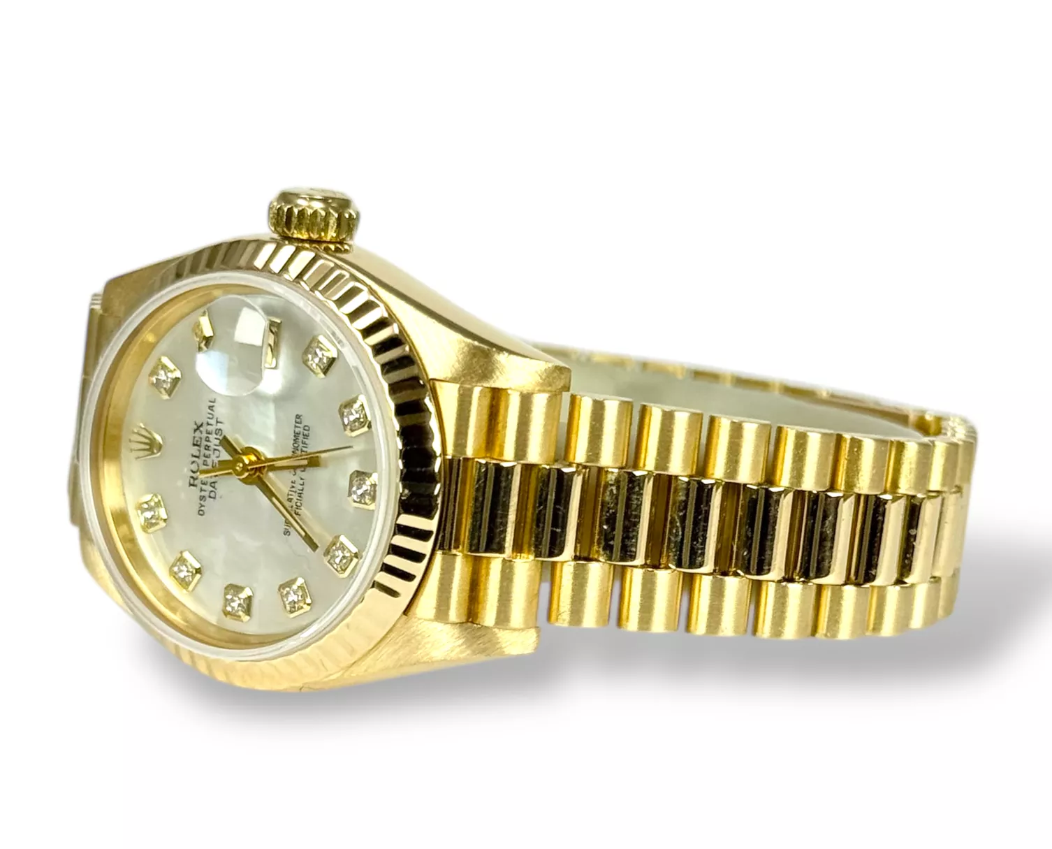 For sale is a Rolex Datejust 26 with President bracelet and genuine Mother of Pearl diamond dot dial, supplied with wallet, original box and original papers