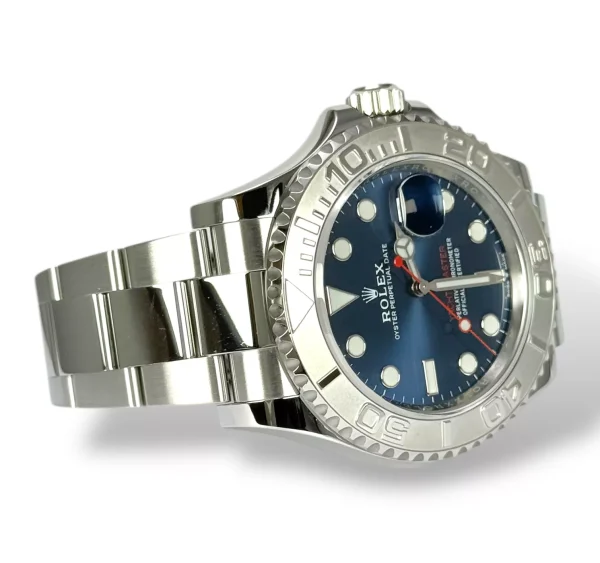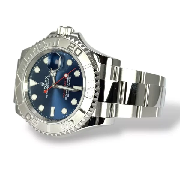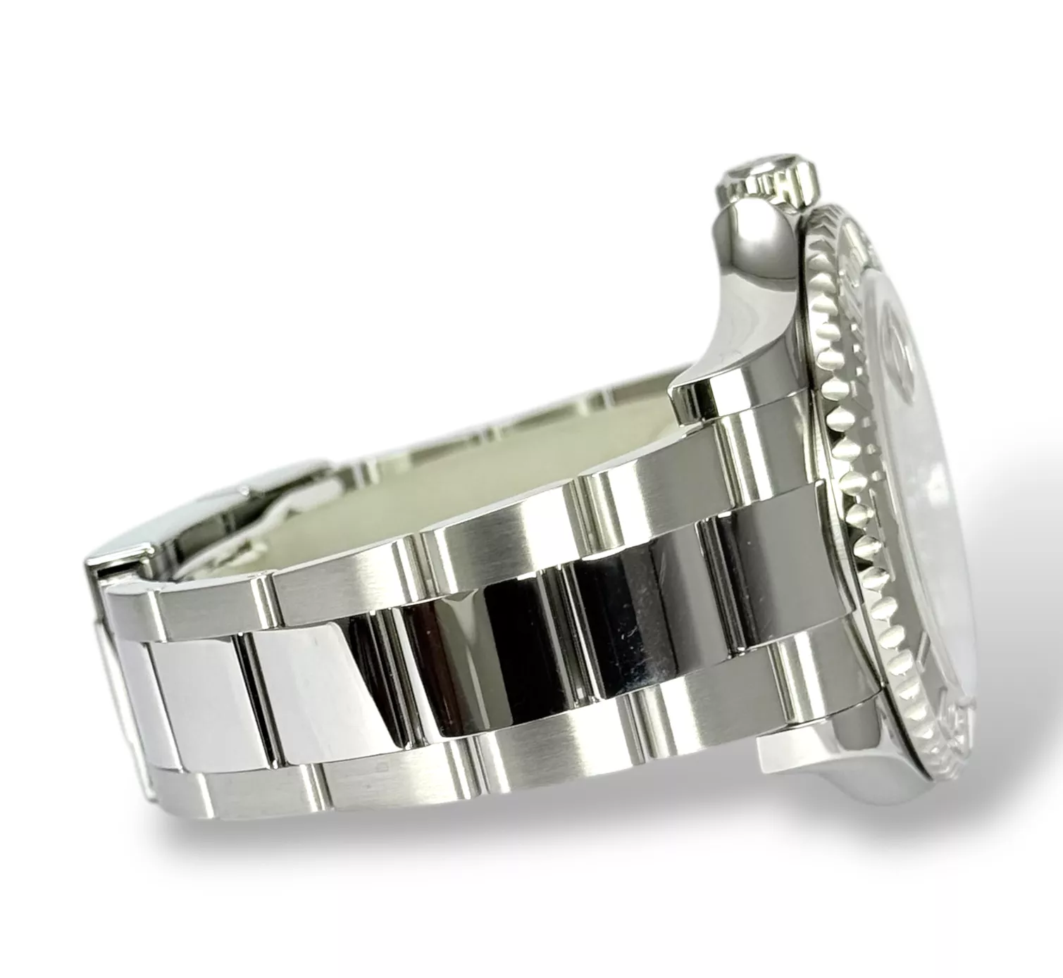 For sale is an excellent example of a stainless steel Rolex Yacht-Master 40, Oyster bracelet with Blue dial and Platinum bezel, supplied with both booklets, both tags, wallet, original box and papers (Latest style card)