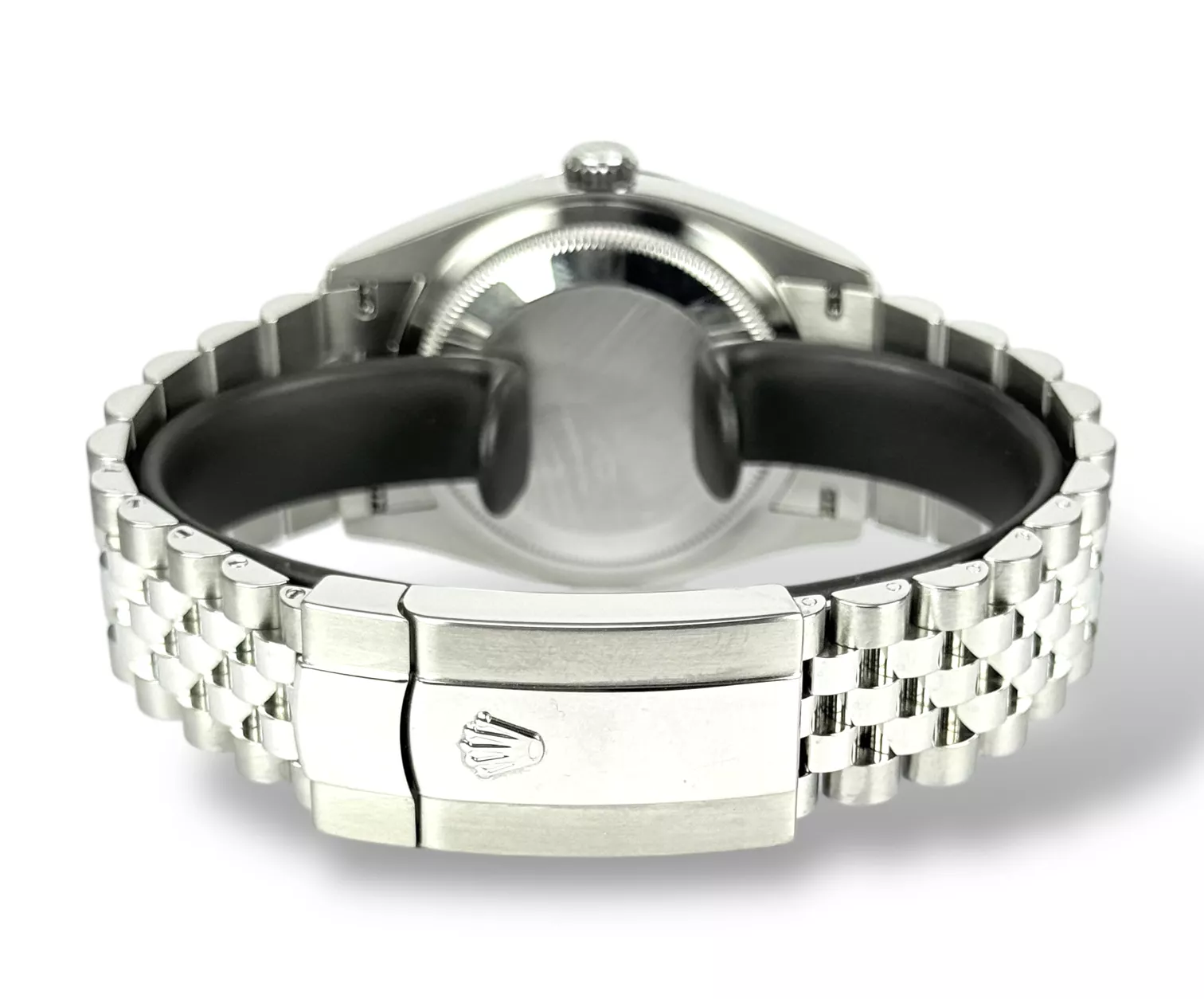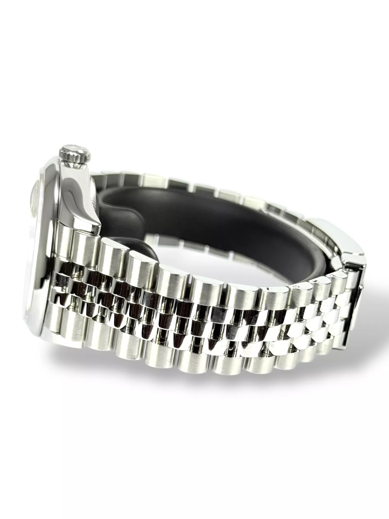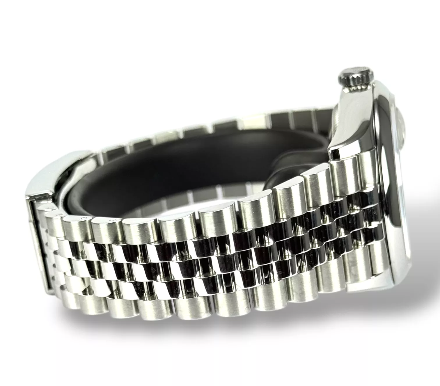 For sale is an excellent example of a stainless steel Rolex Datejust 36, Jubilee bracelet with green “Palm” dial, supplied with both booklets, both tags, wallet, original box and original papers (card)