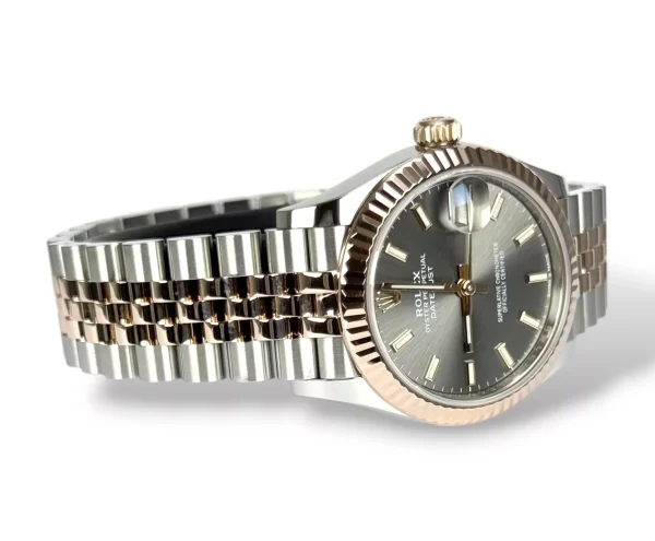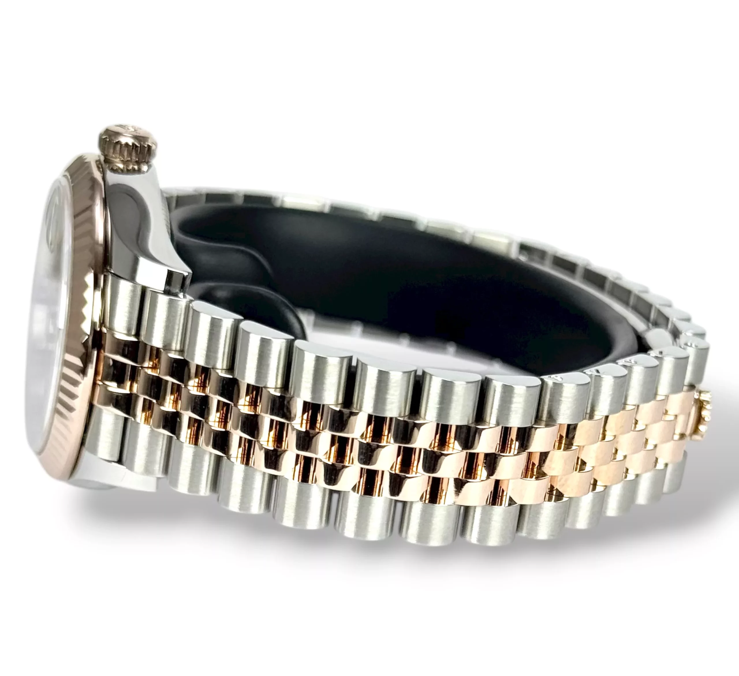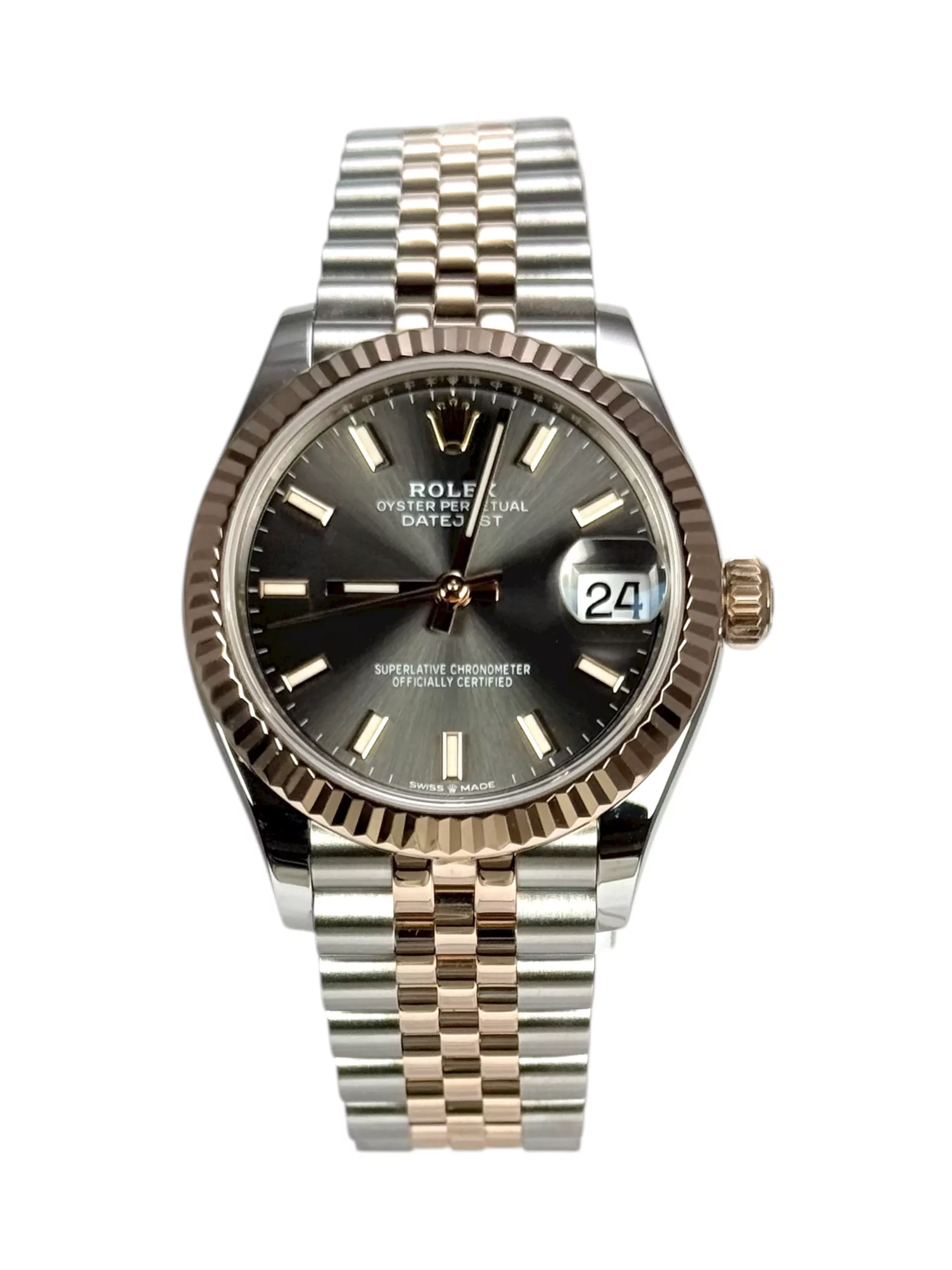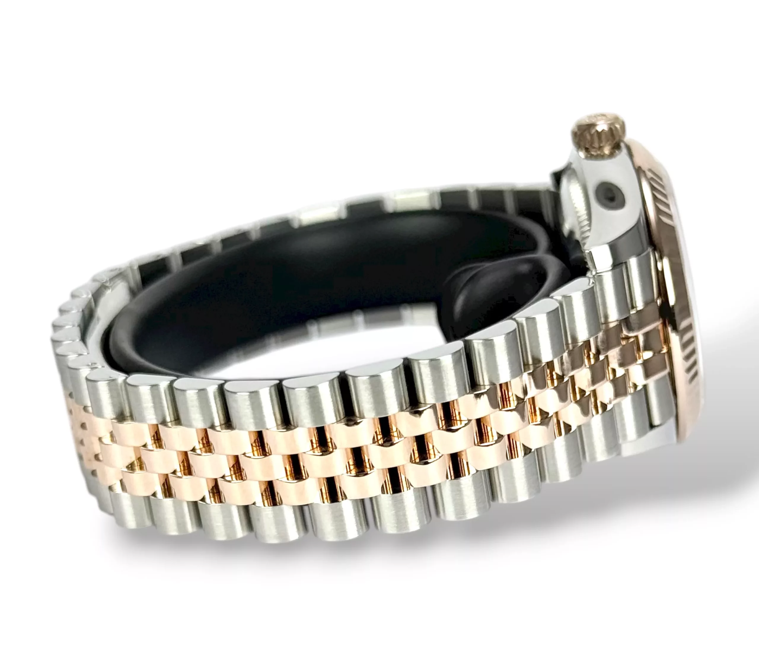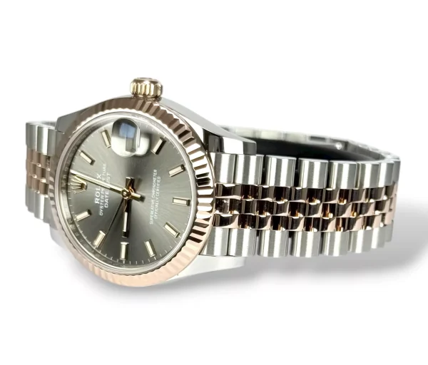 For sale is an excellent example of a stainless steel and rose gold Rolex Datejust 31, Jubilee bracelet with the rhodium baton dial, supplied with both booklets, green tag, wallet, original box and papers (card)