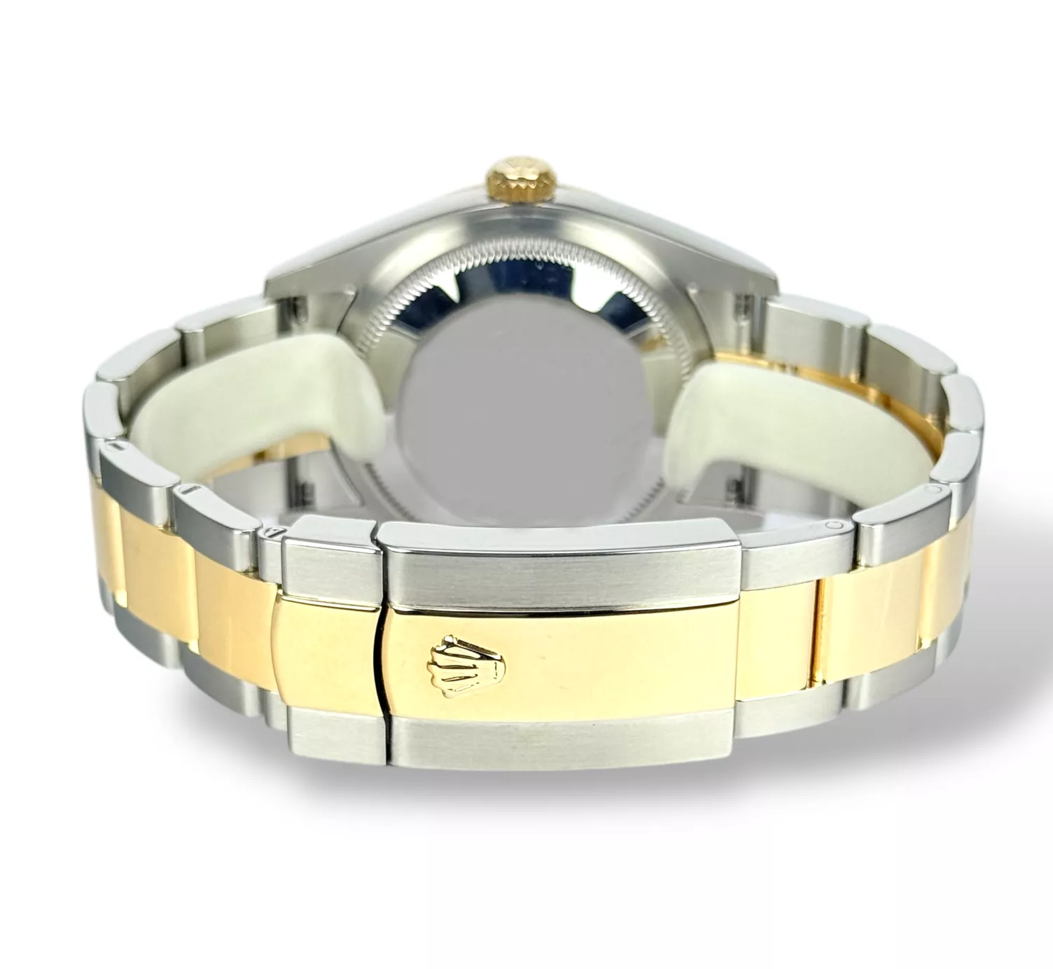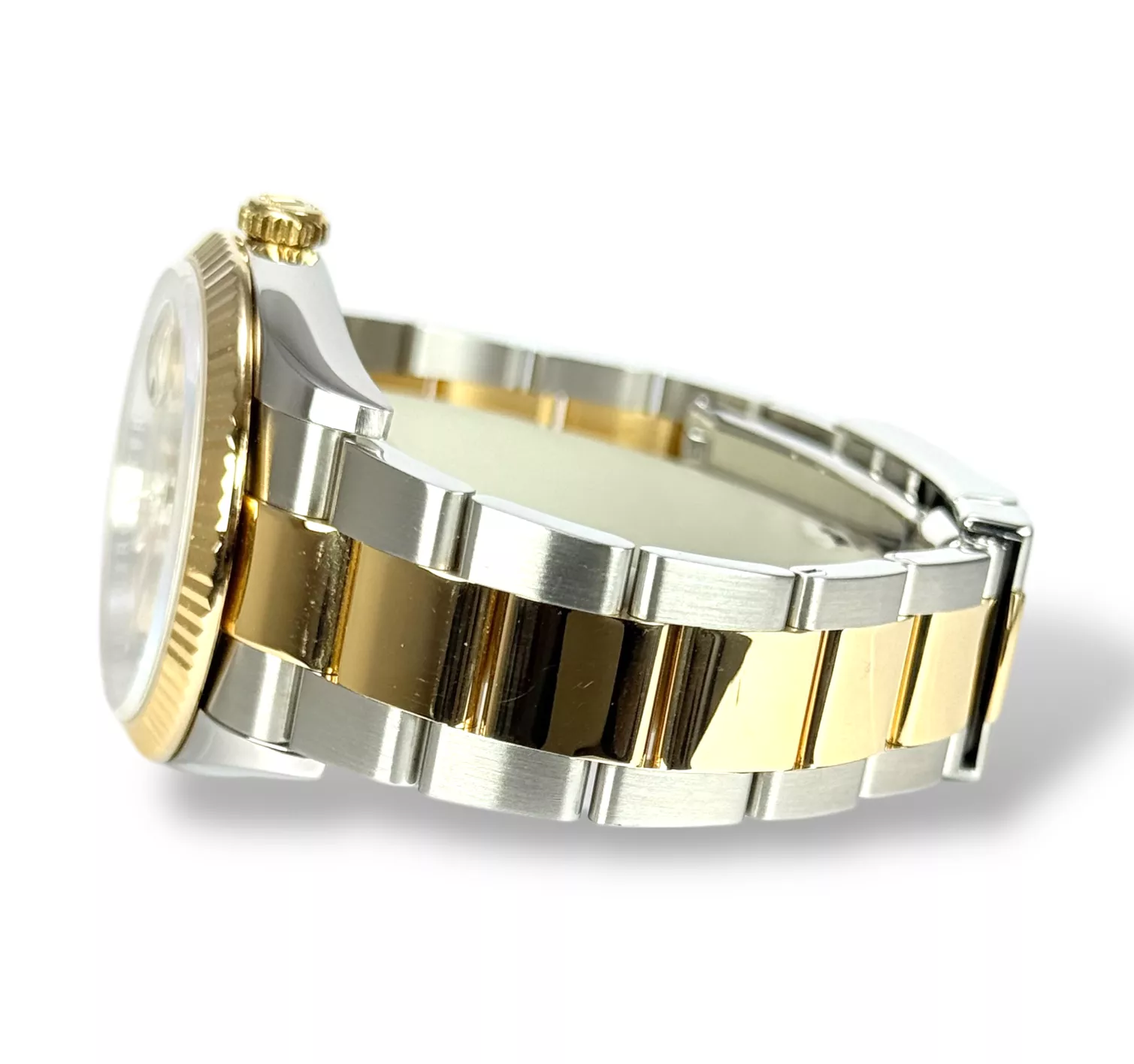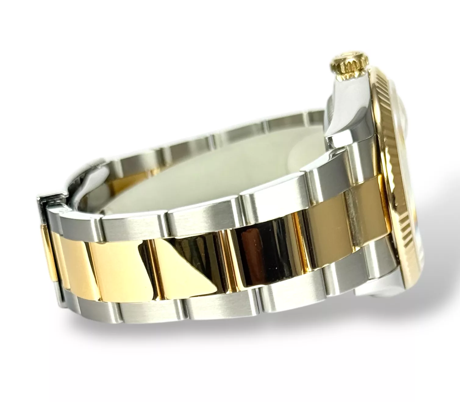 For sale is a Excellent example of a stainless steel and yellow gold Rolex Datejust 36, Oyster bracelet with a champagne baton dial, supplied with original box